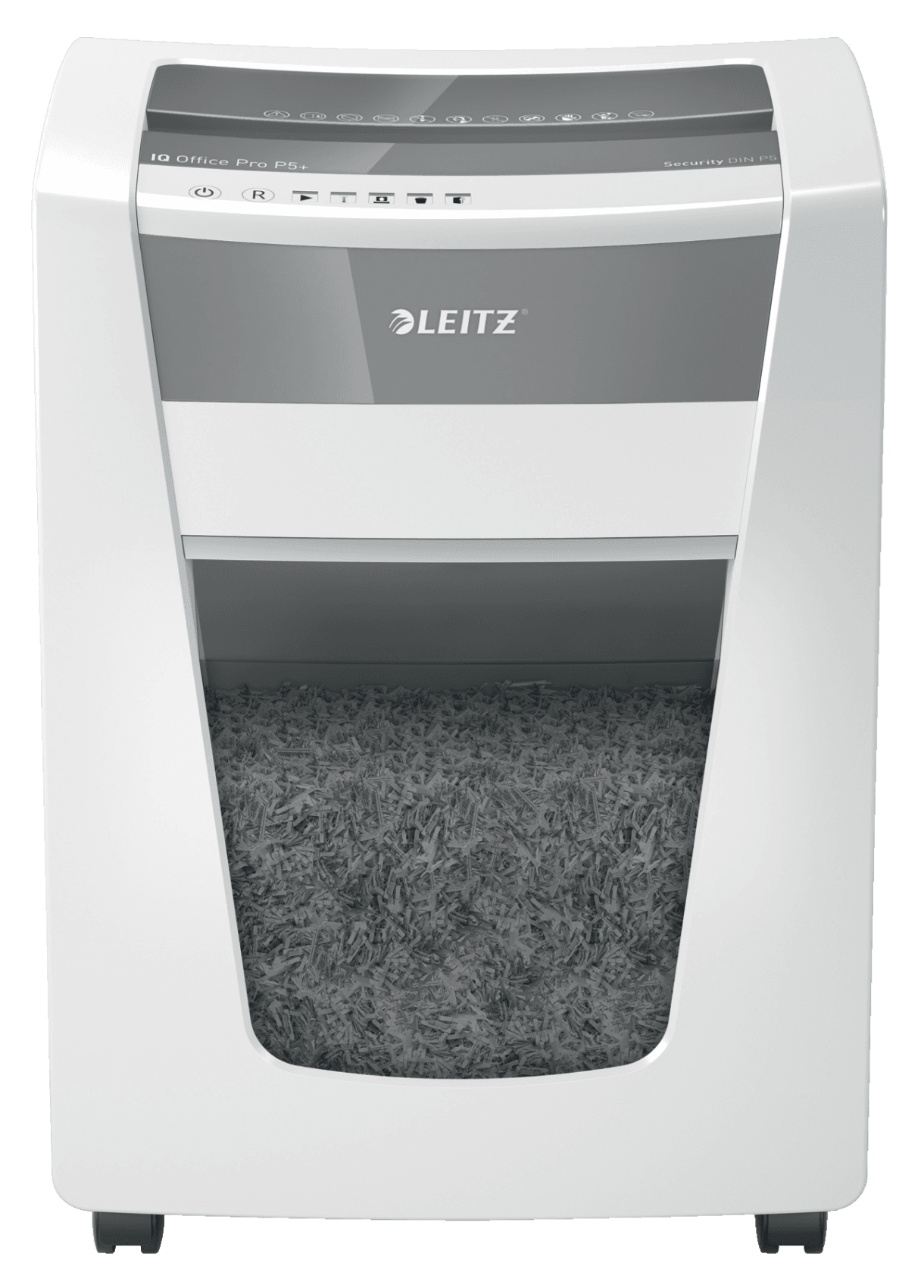Der Leitz IQ Office Pro Sicherheitsstufe P5+ (3 mal sicherer als P-5 Standard) ist nicht nur äußerst schick, sondern arbeitet auch leise, sodass er selbst in größeren Büros nicht stört. Er kann 4 Stunden im Dauerbetrieb eingesetzt werden und ist dank Touch Control und Anti-Papierstau-Technologie leicht zu bedienen. Die Sicherheitsstufe P5+ bietet höchste Sicherheit auch bei sensiblen Daten. 7 DIN-A4-Seiten können auf einmal geschreddert werden; der großzügige Auffangbehälter umfasst 30 Liter.