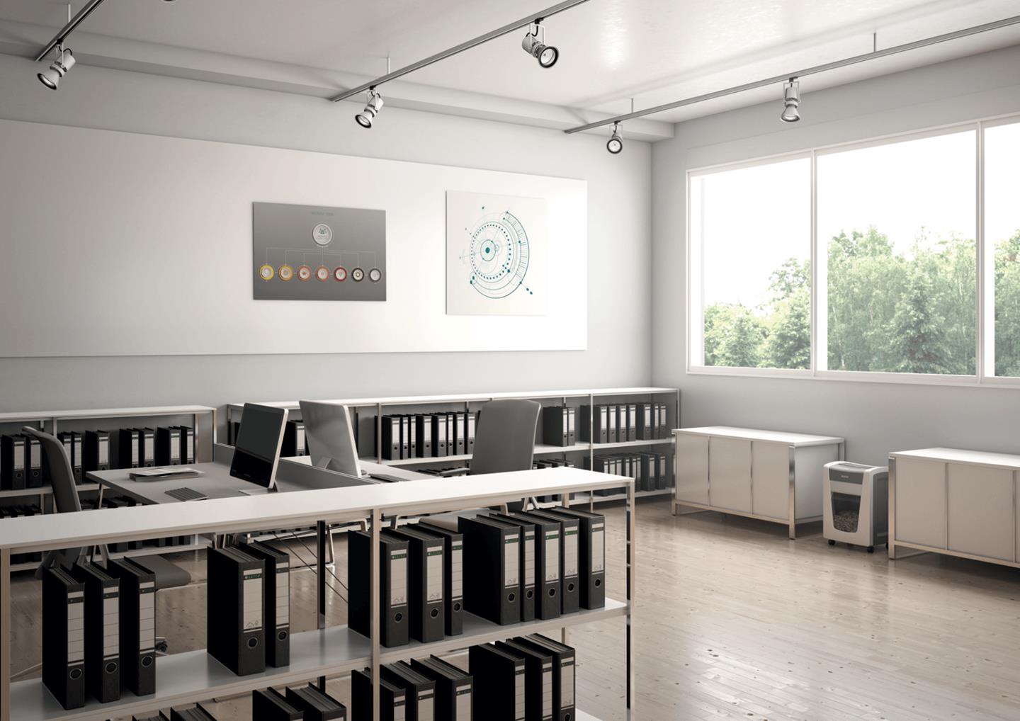 Der Leitz IQ Office Pro Sicherheitsstufe P5 ist nicht nur äußerst schick, sondern arbeitet auch leise, sodass er selbst in größeren Büros nicht stört. Er kann 4 Stunden im Dauerbetrieb eingesetzt werden und ist dank Touch Control und Anti-Papierstau-Technologie leicht zu bedienen. Die Sicherheitsstufe P5 bietet höchste Sicherheit auch bei sensiblen Daten. 15 DIN-A4-Seiten können auf einmal geschreddert werden; der großzügige Auffangbehälter umfasst 30 Liter.