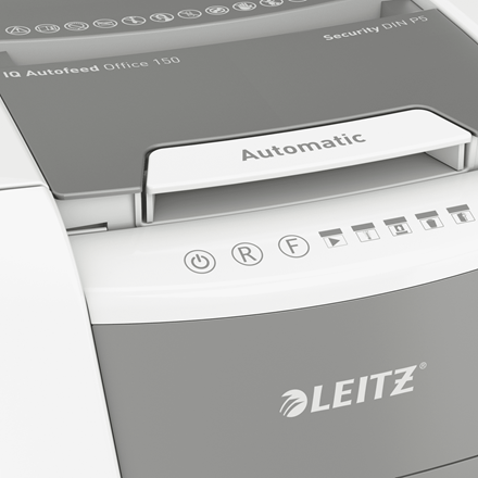 Vollautomatischer Aktenvernichter von Leitz mit einzigartiger Funktion für sauberes Entleeren des Abfallbehälters. So intelligent, dass er komplett selbständig arbeitet. Legen Sie einfach Ihren Papierstapel (inkl. Heft- und Büroklammern) ein, schließen Sie den Deckel und beginnen Sie Ihren Tag. Ideal für den Einsatz in Büros. Hohe Sicherheit und hervorragende Leistung mit diesem papierstaufreien, leisen und lang laufenden (30 Minuten) Autofeed-Aktenvernichter. Schreddern Sie automatisch 150 A4-Blätter in Sicherheitsstufe P5 kleine Mikroschnitt-Partikel (2 x 15 mm) auf einmal in den großzügigen 44 Liter Behälter. Einfach und intuitiv zu bedienen dank Touch-Control.Schreddern unterstützt die Einhaltung der DSGVO (GDPR)!Hauptmerkmale