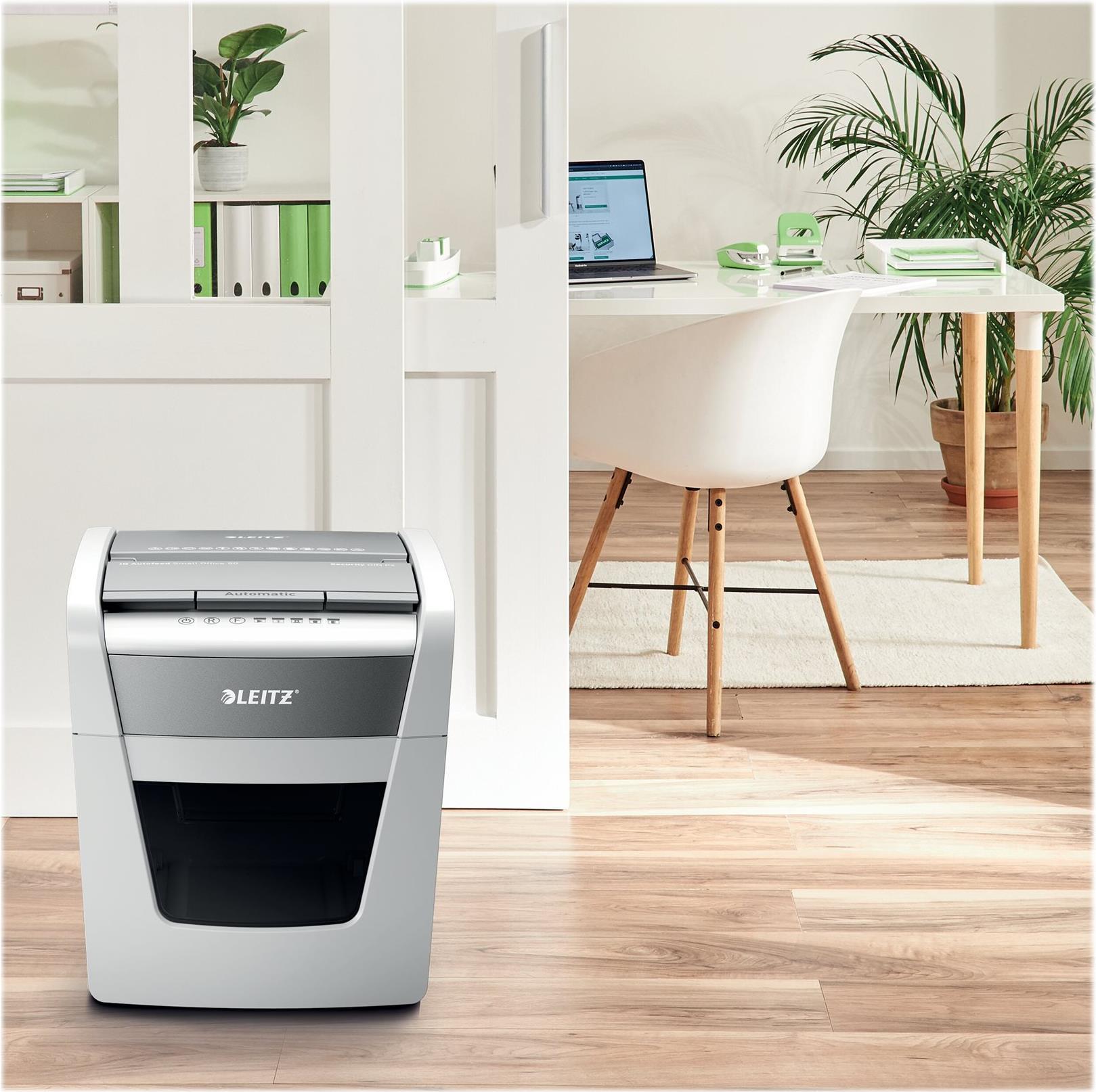 Vollautomatischer Aktenvernichter von Leitz. So intelligent, dass er komplett selbständig arbeitet. Legen Sie einfach Ihren Papierstapel (inkl. Heft- und Büroklammern) ein, schließen Sie den Deckel und beginnen Sie Ihren Tag. Ideal für kleine Büros oder das Home Office. Vertrauliche Sicherheit und hervorragende Leistung mit diesem papierstaufreien, leisen und lang laufenden (10 Minuten) Autofeed-Aktenvernichter. Schreddern Sie automatisch 50 A4-Blätter in Sicherheitsstufe P4 kleine Partikel (4 x 30 mm) auf einmal in den kompakten 20 Liter Behälter. Einfach und intuitiv zu bedienen dank Touch-Control.