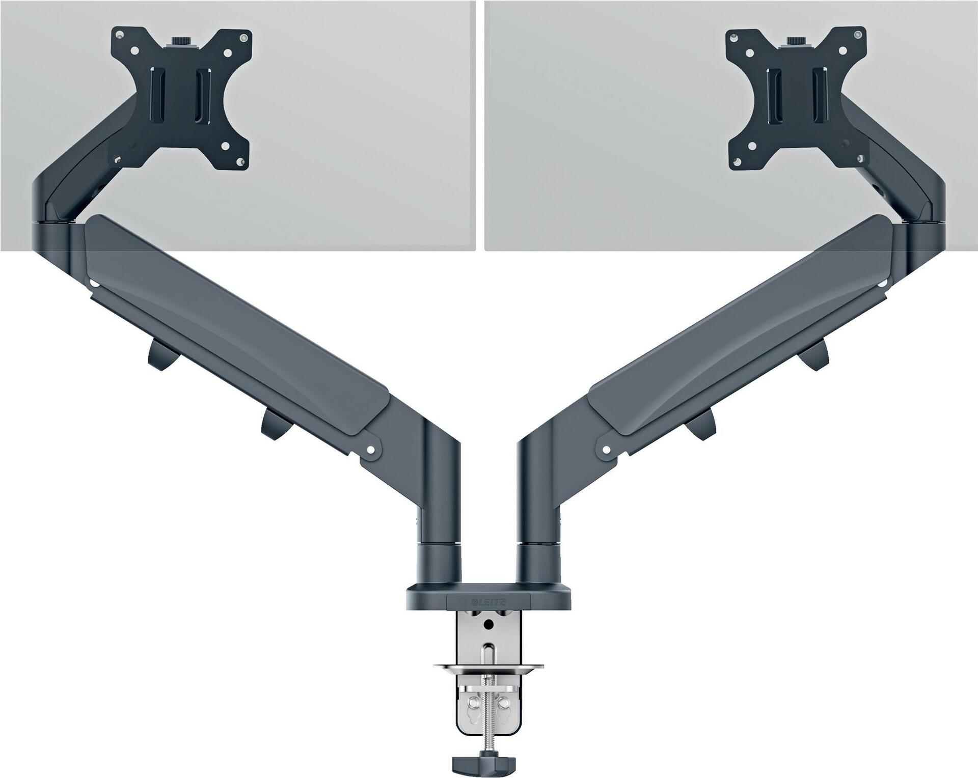 Der TÜV- und IGR-zertifizierte Leitz Ergo Platzsparende Dual Monitorarm wirkt sich positiv auf die Körperhaltung aus, fördert die richtige Ausrichtung der Augen und unterstützt den Nacken- und Schulterkomfort, wenn die Höhe der Monitore korrekt und wie empfohlen auf die ideale ergonomische Position eingestellt wird. Der Monitorständer bleibt in allen Höhen und Winkeln stabil und lässt sich leicht zwischen Quer- und Hochformat wechseln. Das Design ist ideal, wenn nur wenig Platz zur Verfügung steht. Dank seiner extrem vielseitigen Arme, die sich mühelos flach zusammenklappen, neigen und mit nur einer Hand in alle Richtungen manövrieren lassen, wird wertvoller Platz auf dem Schreibtisch frei. Ergonomisch gestaltet, um das Wohlbefinden zu fördern und die Produktivität zu steigern.Produkttext[/head]Der Leitz Ergo Platzsparende Dual Monitorarm wirkt sich positiv auf die Körperhaltung aus, fördert die richtige Ausrichtung der Augen und unterstützt den Nacken- und Schulterkomfort, wenn die Höhe der Monitore korrekt und wie empfohlen auf die ideale ergonomische Position eingestellt wird. Der Monitorständer bleibt in allen Höhen und Winkeln stabil und lässt sich leicht zwischen Quer- und Hochformat wechseln. Dank des platzsparenden Designs ist er ideal für kleinere Räume und Schreibtische, wenn nur wenig Platz zur Verfügung steht. Er schafft außerdem zusätzlichen Platz auf dem Schreibtisch. Ergonomisch gestaltet, um das Wohlbefinden zu fördern und die Produktivität zu steigern.[head]Hauptmerkmale