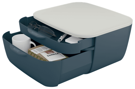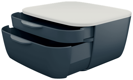 • LEITZ Schubladenbox Cosy, 2 Schübe, grau/hellgrau für Format DIN A4, Deckel hellgrau, matte Oberfläche, - 1 Stück (5357-00-89)