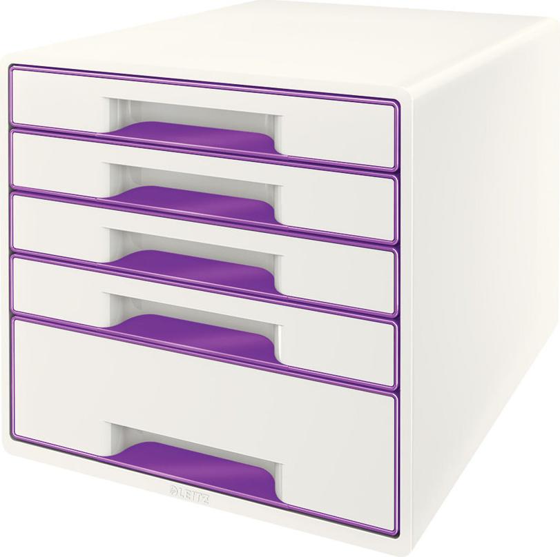 Esselte-Leitz LEITZ Schubladenbox WOW CUBE, 5 Schübe, perlweiß/violett für Format DIN A4 Maxi, Hochglanz, Schubladen mit Auszugs - 1 Stück (5214-20-62)
