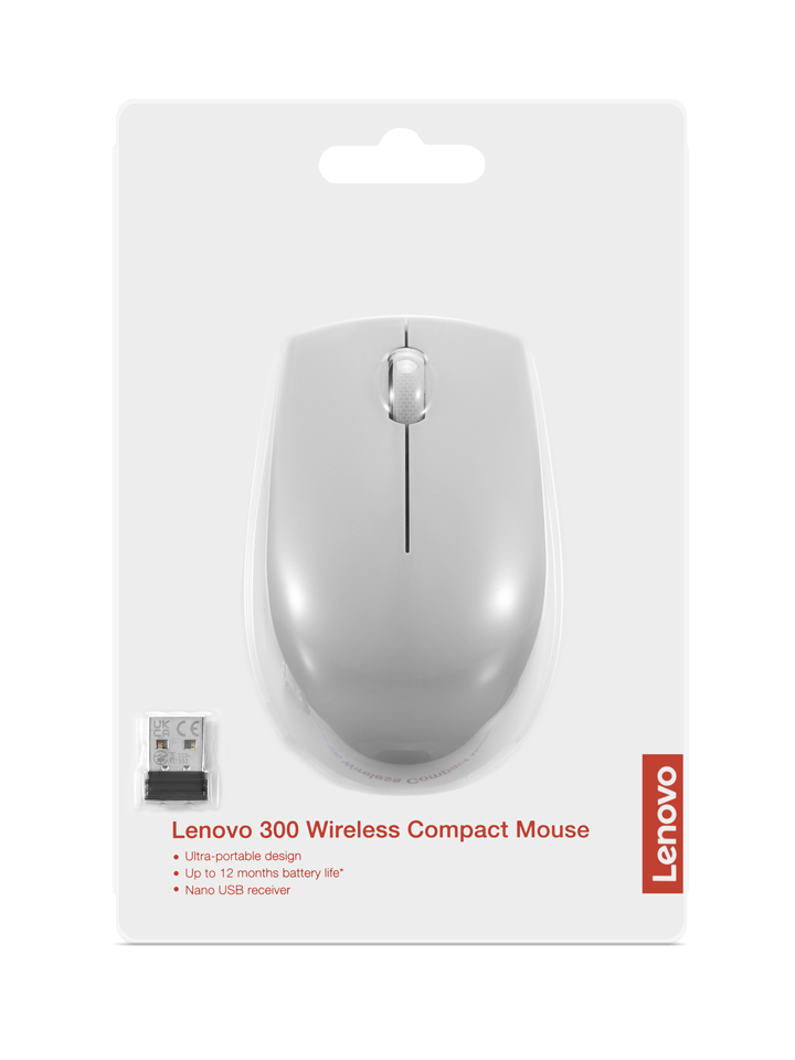Die Lenovo 300 kompakte Funkmaus bietet Mobilität und Funktionalität gleichermaßen. Ein optischer 1.000-dpi-Sensor, 3 Tasten und ihre ausgesprochen ergonomische Form sorgen stets für eine angenehme Nutzererfahrung.Hauptmerkmale