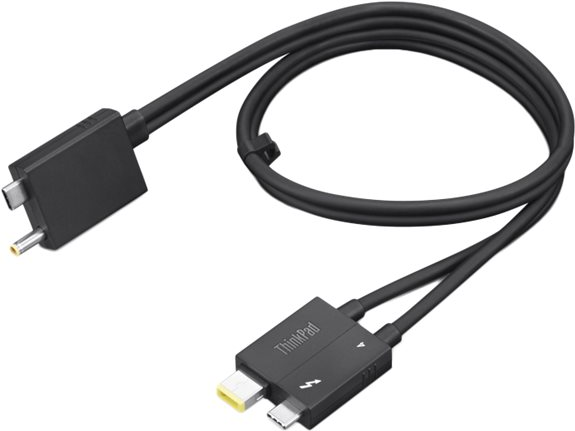 Das Lenovo Thunderbolt 4 Workstation Dock Split Cable ist ein geteiltes Dock-Kabel mit einer Länge von 70 cm, das für das ThinkPad Thunderbolt 4 Workstation Dock entwickelt wurde, indem es das Slim-Tip-Netzkabel und das Thunderbolt 4-Kabel kombiniert.