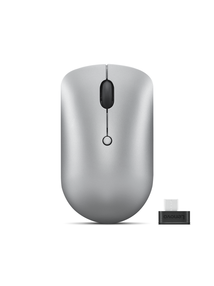 Lenovo - Maus - kompakt - rechts- und linkshändig - optisch - 4 Tasten - kabellos - 2.4 GHz - USB-C Wireless-Empfänger - Cloud Gray - braune Box - CRU - für IdeaPad 1 14; 3 14; 5 Pro 14; ThinkBook 14s Yoga G2 IAP; ThinkPad E14 Gen 3; T14s Gen 3 (GY51D20869)