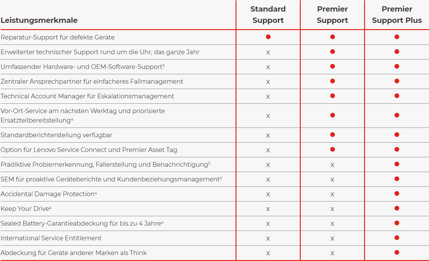 Die Lenovo Premier Support Services unterstützen Sie in allen Fragen des Supports. Eine dedizierte Telefonnummer und ein einzelner Ansprechpartner für umfassendes Fallmanagement im Hinblick auf Original Equipment Manufacturer-Software (OEM) und Hardware-Support. Ein Experte zur Fehlerbehebung sorgt für eine freundliche, einheitliche Kommunikation - er hört sich zunächst die Probleme an, bevor er eine Lösung anbietet.