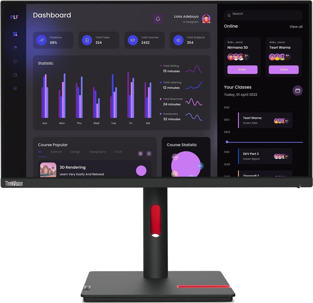 Leistung den ganzen Tag dank dem ThinkVision T24i-30. Mithilfe des FHD-Displays mit In-Plane Switching und nahezu rahmenlosen Blenden können Sie Ihre Effizienz steigern. Der ThinkVision T24i-30 eignet sich auch für den professionellen Einsatz, da er die Ermüdung und Belastung der Augen minimiert. Verschiedene Optionen für die Verbindung mit anderen Peripheriegeräten unterstützen das problemlose Übertragen und Empfangen von Daten. Dieser wohl durchdachte Bildschirm sorgt nicht nur für Ordnung auf Ihrem Schreibtisch, sondern bietet Benutzern, die viele Stunden bei der Arbeit verbringen, auch ergonomische Vorteile.