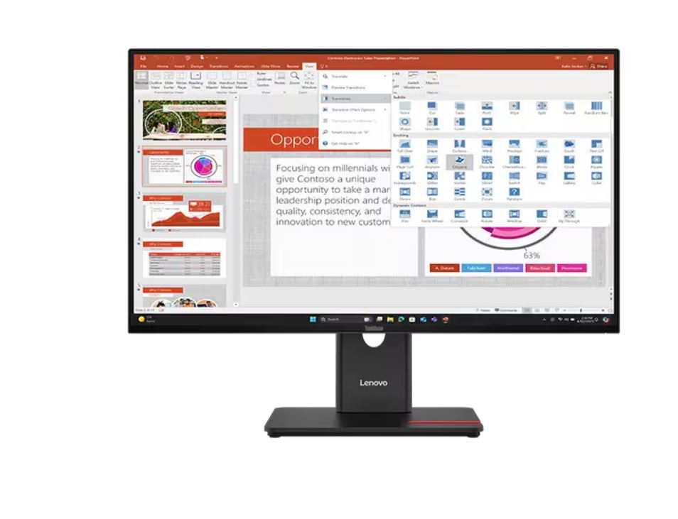 Der ThinkVision T27-40 Monitor ist ein 27" FHD IPS-Bildschirm mit einem breiten Farbraum von 99% sRGB und 99% BT.709, der aus jedem Betrachtungswinkel ein lebendiges Bild liefert.