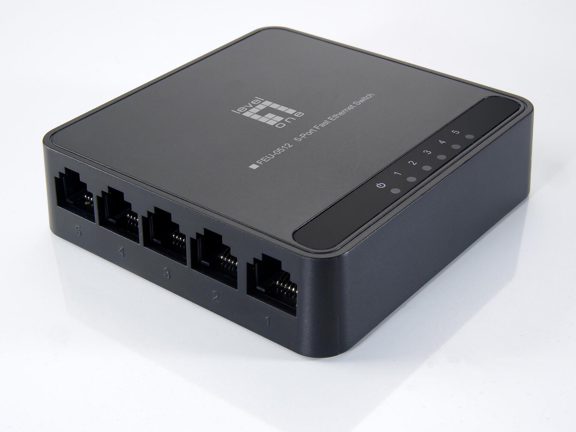 Der LevelOne FEU-0512 ist ein drahtgebundener, non-blocking Switch mit fünf 10/100 Mbit/s RJ45 Ethernet-Ports. Alle Ports unterstützen Auto-Negotiation und Auto-MDI/MDIX-Sensing, so dass keine Crossover-Kabel oder Uplink-Ports benötigt werden. Jeder Port kann als allgemeiner Netzwerkanschluss oder als Verbindungsanschluss zu einem Router, Server, Hub oder einem anderen Netzwerk-Switch verwendet werden. Die ideale Wahl für preisbewusste Anwender.