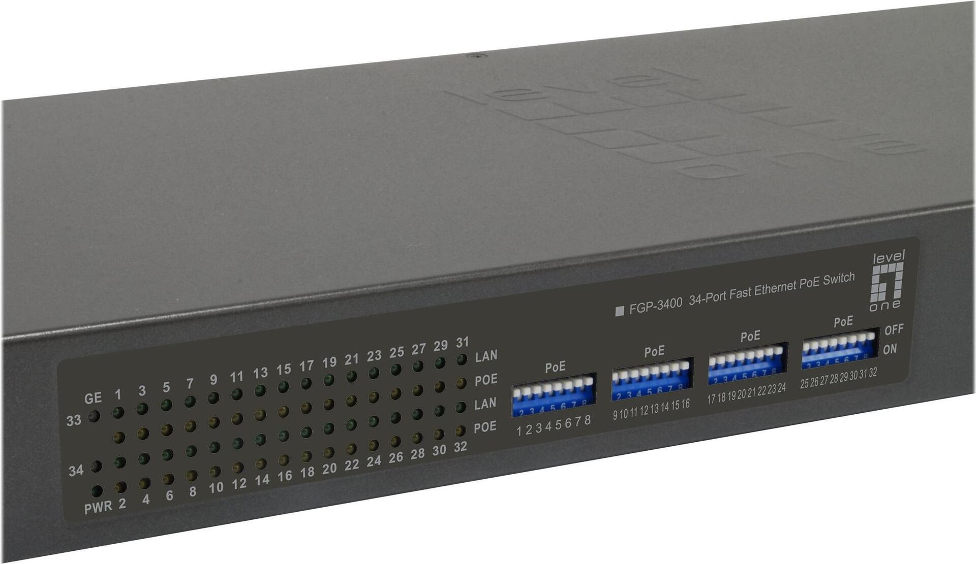 | Produktbeschreibung | LevelOne FGP-3400W380 - Switch - 34 Anschlüsse - an Rack montierbar |