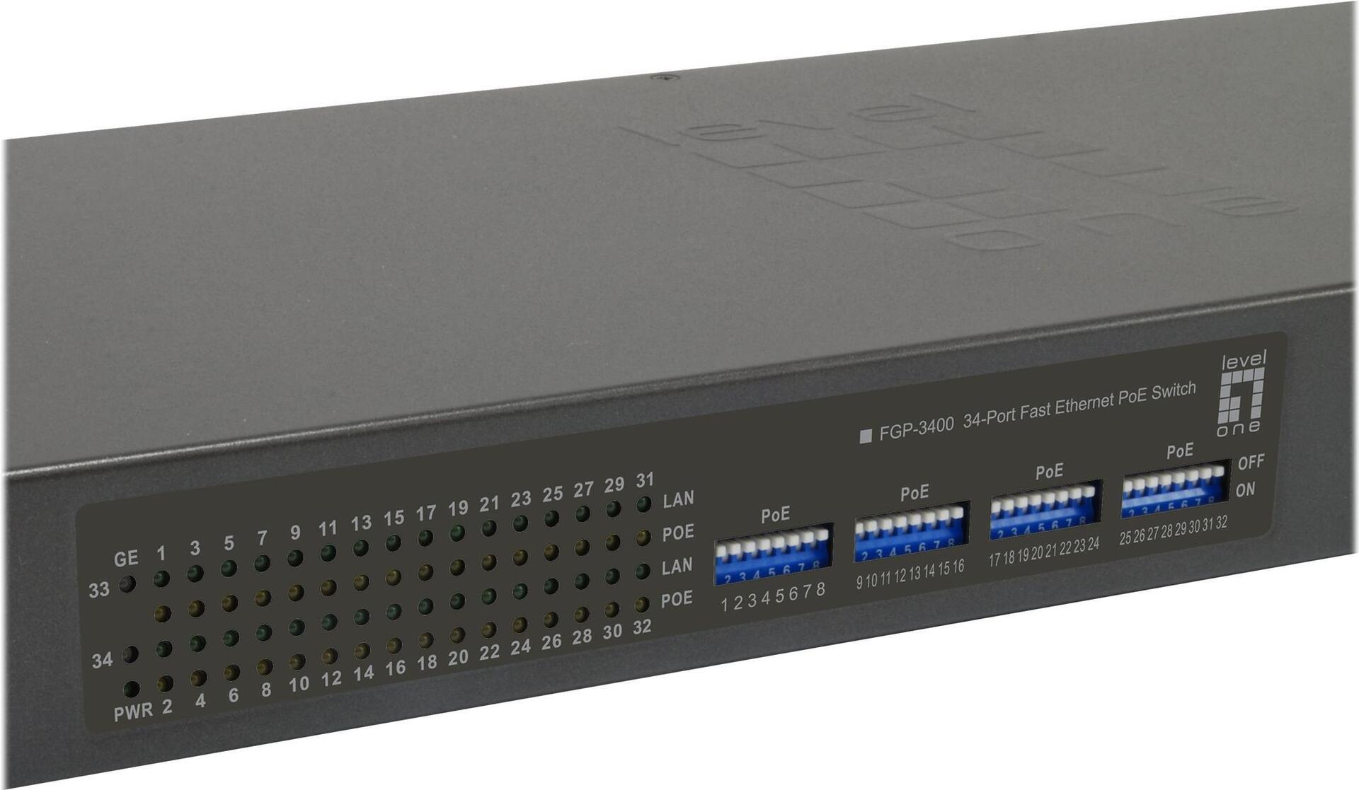 | Produktbeschreibung | LevelOne FGP-3400W630 - Switch - 34 Anschlüsse - an Rack montierbar |