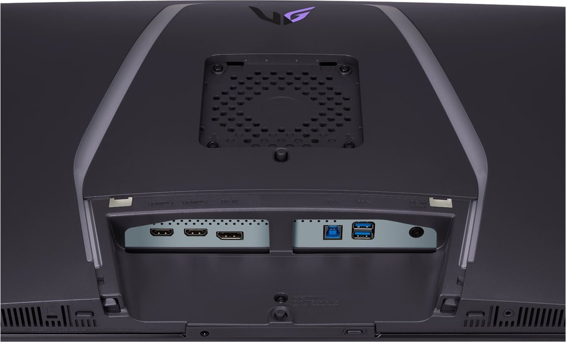 2x HDMI 2.1 (240Hz@3840x2160), 1x DisplayPort 1.4 (240Hz@3840x2160), 1x USB-B 3.0 (Upstream, 5Gb/?s), 2x USB-A 3.0 (Downstream, 5Gb/?s), 1x 3.5mm Klinke (Line-Out, 4-pin), 1x DC-In Hohlbuchse (Netzanschluss) |
