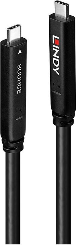 Lindy - USB-Kabel - 24 pin USB-C (M) zu 24 pin USB-C (M) - USB 3,2 Gen 2 / DisplayPort 1,4 /Thunderbolt 3 3 A - 10,0m - unterstützt 4K 144 Hz (3840 x 2160), USB-C Power Delivery (60 W), rund - Schwarz (43398)