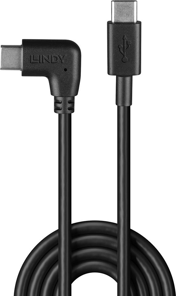 Lindy - USB-Kabel - 24 pin USB-C (M) gerade zu 24 pin USB-C (M) nach rechts abgewinkelt - USB 2,0 - 1,0m - rund - Schwarz (32005)