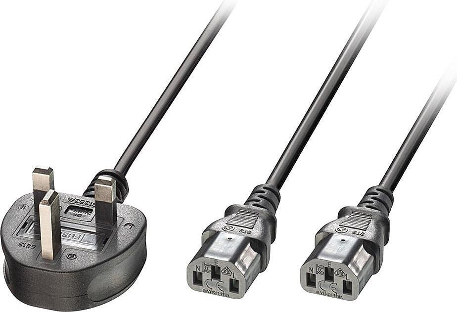 Lindy - Netz-Splitter - IEC 60320 C13 bis BS 1363A (M) - 13 A - 2,5m - geformt - Schwarz - Großbritannien (30371)