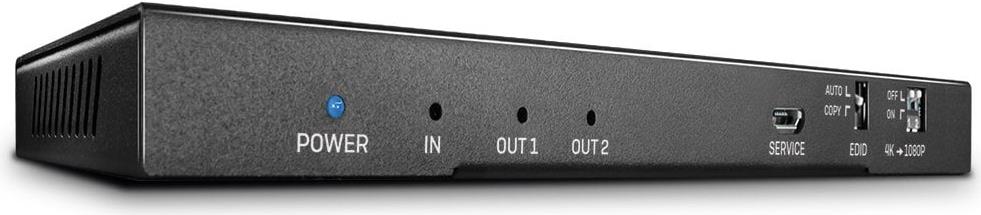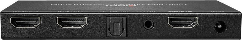 | Schnittstellen | 1 x HDMI-Eingang 2 x HDMI-Ausgang 1 x USB Management 1 x Audioausgang mini-jack 1 x TOSLINK-Ausgang |