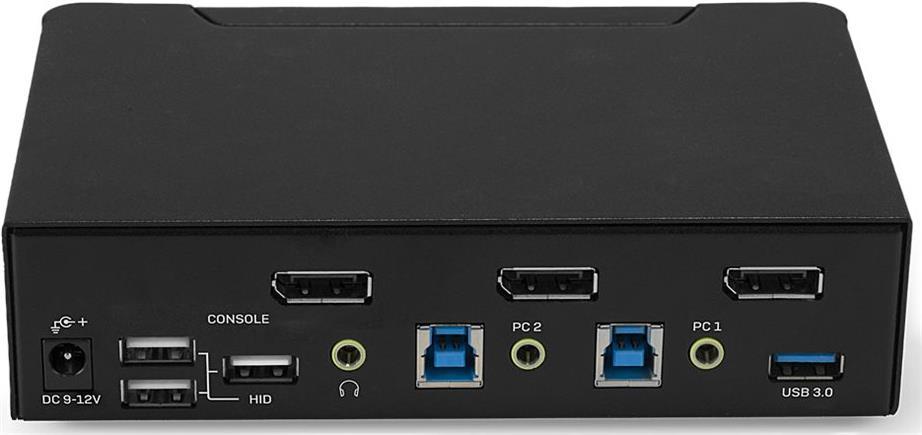 Schaltet zwischen 2 DP-PCs von einer einzigen Konsole (Tastatur, Maus, Monitor) aus um.