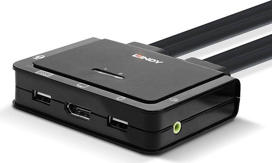 Lindy 2 Port DisplayPort 1.2, USB Typ C, USB 2.0 & Audio Cable KVM Switch Steuern eines DisplayPort-PCs und eines USB Typ C Laptops mit einer Konsole (42346)