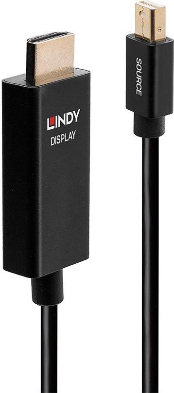 Lindy - Videokabel - DisplayPort / HDMI - Mini DisplayPort (M) bis HDMI (M) - 2,0m - abgeschirmt - Schwarz - rund, 4K Unterstützung, aktiver Chip (40922)