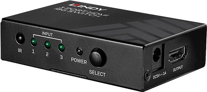 Lindy 3 Port HDMI 18G Switch - Video/Audio-Schalter - 3 Anschlüsse |