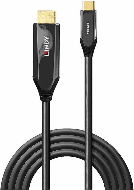 Lindy - Adapterkabel - 24 pin USB-C männlich zu HDMI männlich - 3,0m - abgeschirmt - Schwarz - rund, unterstützt 8K 60 Hz (7680 x 4320) (43369)