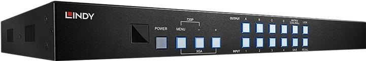 Produktbeschreibung Lindy 4x4 HDMI Matrix with Video Wall Scaling - Video/Audio-Schalter - Desktop, an Rack montierbar