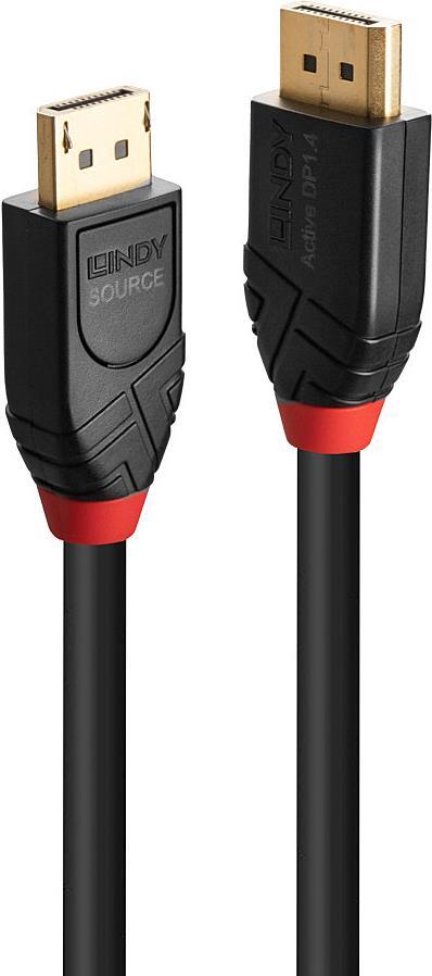 Lindy - DisplayPort-Kabel - DisplayPort (M) bis DisplayPort (M) - DisplayPort 1,4 - 5,0m - rund, aktiv, unterstützt 8K 60 Hz (7680 x 4320), unterstützt 4K 144 Hz (4096 x 2160) - Schwarz (41167)