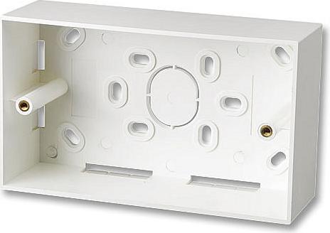 Aufputzrahmen für Blenden der modularen Wanddosenserie in der Größe 146x86mm Doppel-Wanddosen UK, in Kunststoff weiß, RoHS und UL kompatibel.