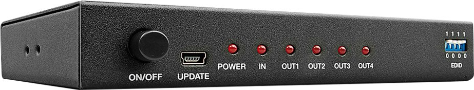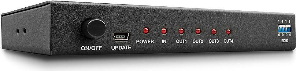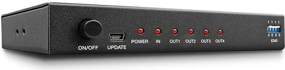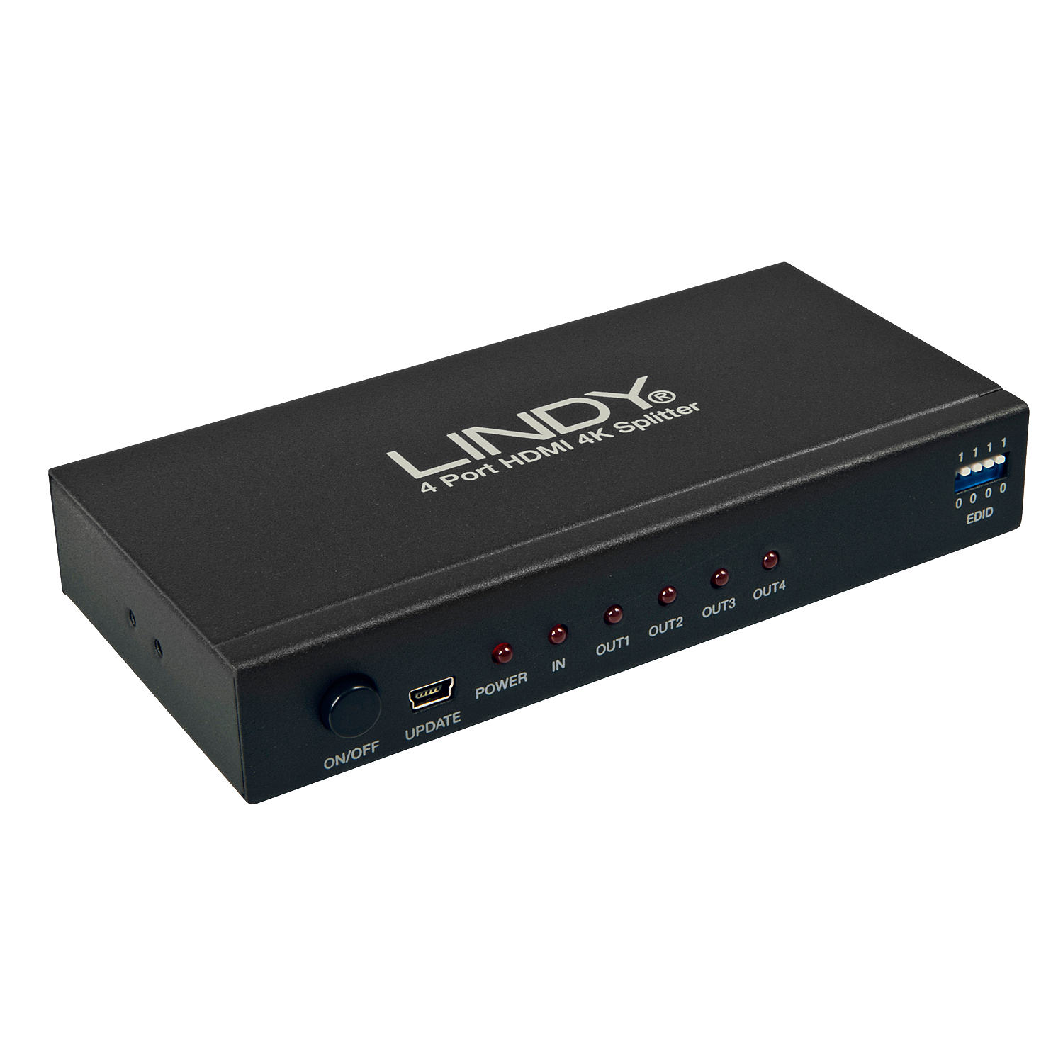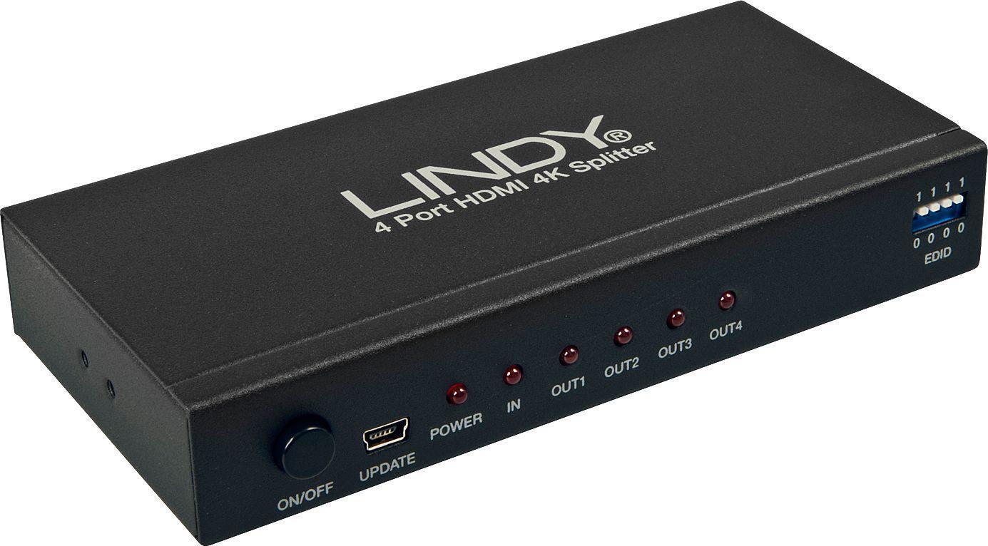 Zum Anschluss einer HDMI-Quelle und Verteilen des Signals auf vier 4K Displays Unterstützt Auflösungen bis 4K 60Hz 4:2:0 EDID Management für größere Kompatibilität Kompaktes Design 2 Jahre Garantie, mehr über Garantiebedingungen hier Der Lindy 4 Port HDMI 10.2G Splitter ist eine günstige und kompakte Lösung zum Verteilen von 4K Ultra HD-Signalen von einer Quelle auf vier Displays. Er unterstützt hohe Auflösungen von 3840x2160@60Hz 4:2:0 und eignet sich ideal für den Einsatz im Handel, in Sportbars oder für die Anzeige auf zwei Displays in Konferenzräumen. Das einfache EDID Management sorgt für eine problemlose Installation und bestmögliche Kompatibilität mit zahlreichen Displays, egal ob beim Anschluss an Mediaplayer, Set-Top Boxen oder Spielekonsolen. Das kompakte Design erlaubt eine dezente Installation des Splitters ohne Ablenkung von den Displays.