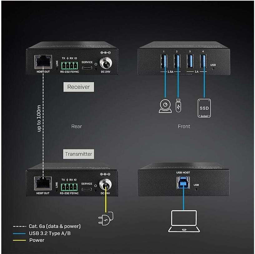 Lindy - Sender und Empfänger - USB/Netzwerk-Extender - USB 3.2 Gen 1, HDBaseT (43410)