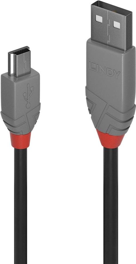 Lindy Anthra Line - USB-Kabel - USB (M) bis Mini-USB, Typ B (M) - USB2.0 - 5,0m - rund - Schwarz (36725)