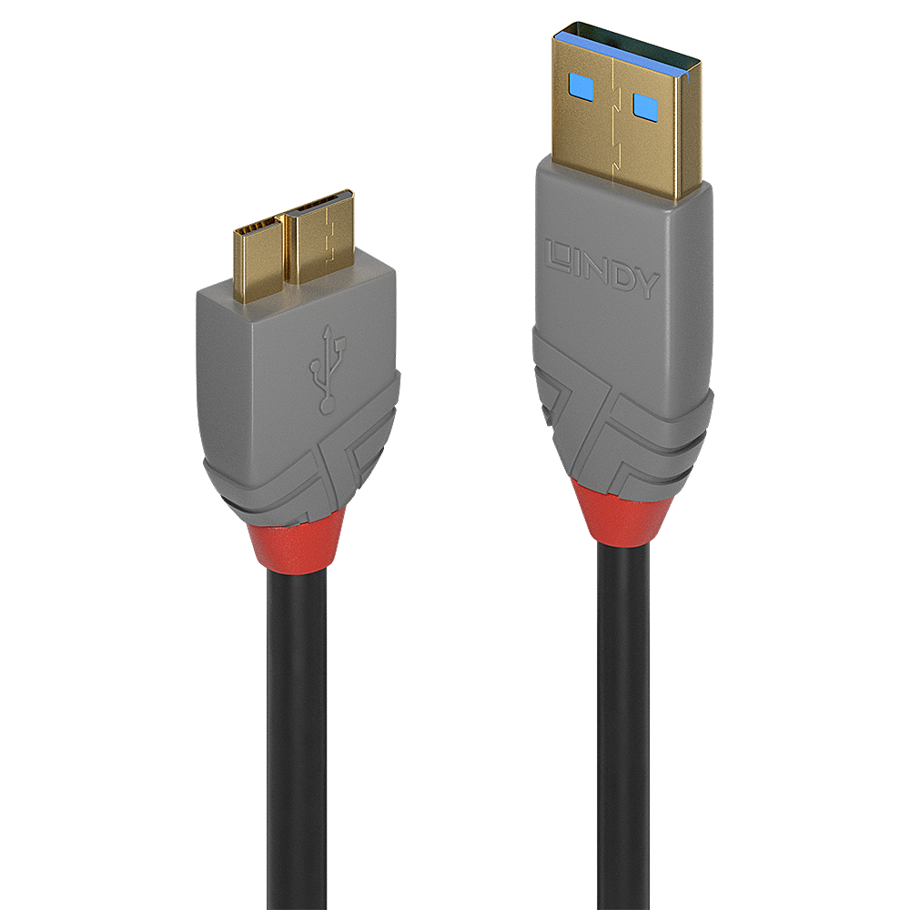Lindy 3m USB 3.2 Typ A an Micro-B Kabel, 5GBit/s, Anthra Line USB Typ A Stecker an Micro-B Stecker (36768)