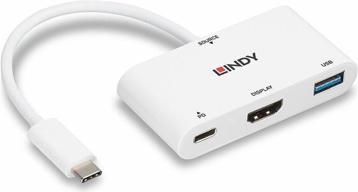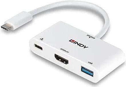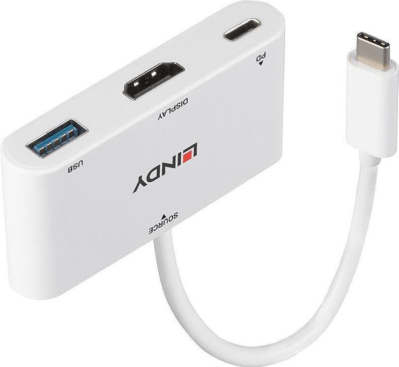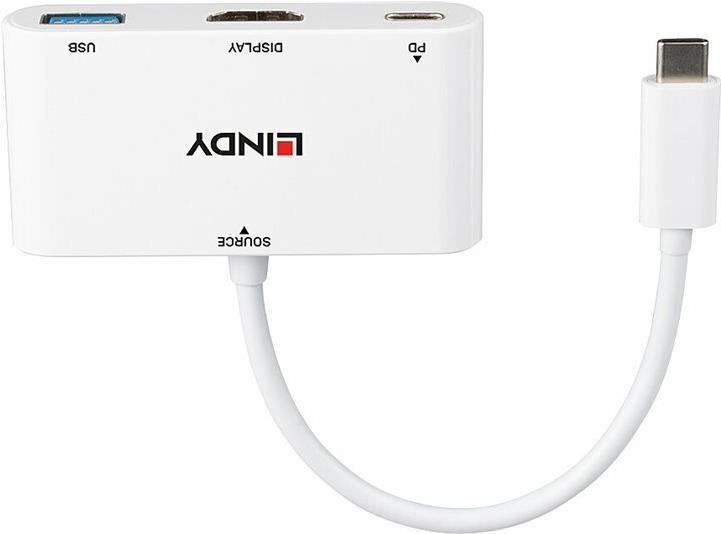 Verbindet ein HDMI -Display, ein USB Device und ein USB-Netzteil mit einem USB Port Typ C.