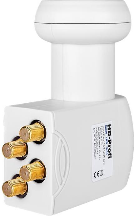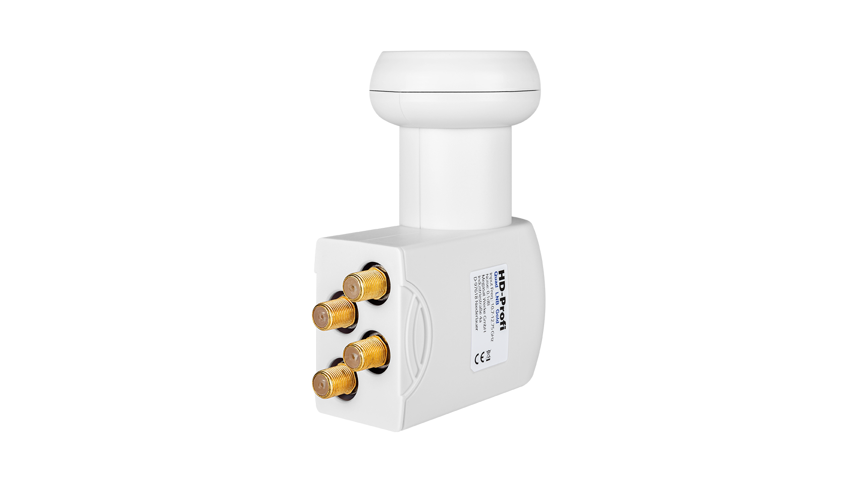 Die vergoldeten F-Anschlüsse sorgen für eine bessere Leitfähigkeit der Signale und das geringe Rauschmaß von nur 0,1 dB gewährleistet hohe Bild- und Tonqualität. Auch der Empfang von HD-, 3D- oder 4K-Programmen ist mit diesem LNB garantiert.