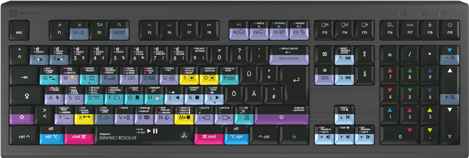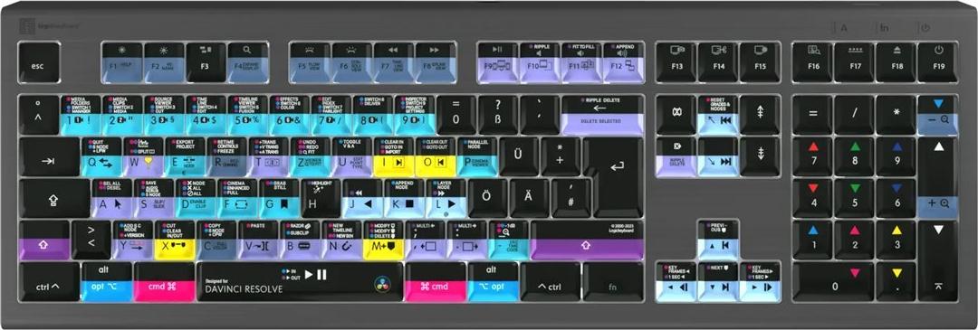 Das Logickeyboard DaVinci Resolve Astra 2 ist eine sorgfältig konzipierte Tastatur, die auf die Bedürfnisse von Mac-Benutzern zugeschnitten ist, insbesondere im kreativen Bereich und bei der Bearbeitung. Ihr herausragendes Merkmal ist die 5-stufige Hintergrundbeleuchtung, die ein ermüdungsfreies Arbeiten bei allen Lichtverhältnissen ermöglicht. Der integrierte USB 3.0-Hub erweitert die Funktionalität und ermöglicht den direkten Anschluss zusätzlicher Geräte, wodurch Ihr Arbeitsbereich optimiert wird. Die Scherentasten bieten nicht nur ein komfortables Tipperlebnis, sondern sorgen auch für Präzision bei jedem Tastenanschlag und sind damit ideal für umfangreiche Bearbeitungssessions. Da die Tastatur Plug-and-Play-fähig ist, lässt sie sich ganz einfach einrichten, so dass Sie sich ganz auf Ihre kreative Arbeit konzentrieren können. Das britische QWERTY-Layout mit 109 Tasten, einschließlich eines Ziffernblocks, bietet ein umfassendes und effizientes Steuerungsschema, das die Produktivität steigert. Ob Sie nun ein professioneller Cutter oder ein kreativer Enthusiast sind, die Logickeyboard DaVinci Resolve Astra 2-Tastatur wurde entwickelt, um Ihre Bearbeitungsfähigkeiten zu verbessern und Ihren Workflow zu optimieren.