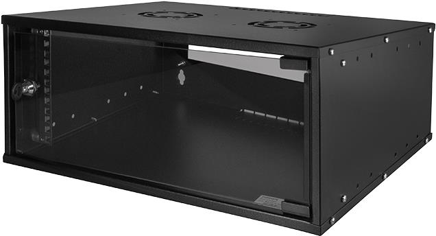 LogiLink 48,30cm (19") Wandverteiler ECO, 4 HE, montiert, schwarz (RAL 9005), aus 0,8 mm Stahlblech, Glastür mit Zylinder - 1 Stück (W04C55B)