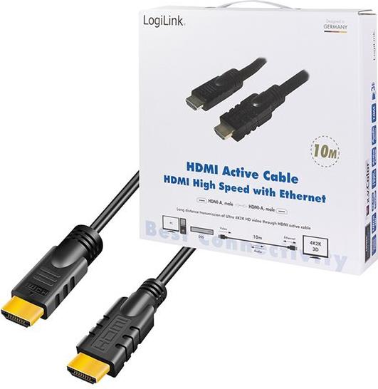 LogiLink Active HDMI High Speed Cable - HDMI-Kabel mit Ethernet - HDMI Stecker zu HDMI Stecker - 10 m - Schwarz - aktiv, geformt, 4K Unterstützung