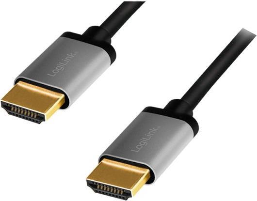 LogiLink - Highspeed - HDMI-Kabel mit Ethernet - HDMI männlich bis HDMI männlich - 2 m - Dreifachisolierung - Grau, Schwarz - unterstützt 4K 60 Hz (3840 x 2160)