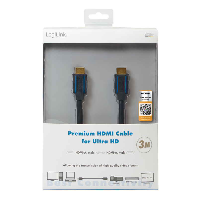 Genießen Sie mit dem LogiLink Premium HDMI Kabel die besten Auflösungen. Unterstützt wird die HDMI 2.0 Spezifikation mit 3D, 4K Ultra HD und Audio Return Channel (Audiorückkanal).