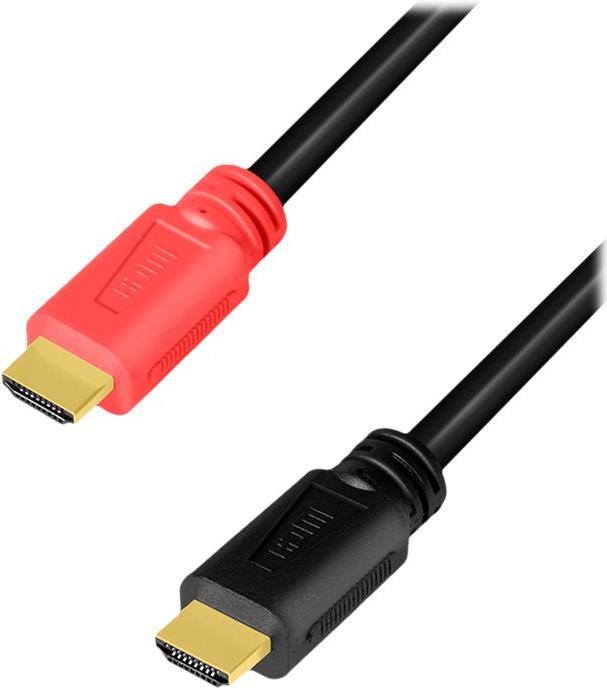 LogiLink - Premium High Speed - HDMI-Kabel - HDMI männlich zu HDMI männlich - 10 m - Dreifachisolierung - Schwarz, Rot - aktiv, unterstützt 4K 60 Hz (3840 x 2160)