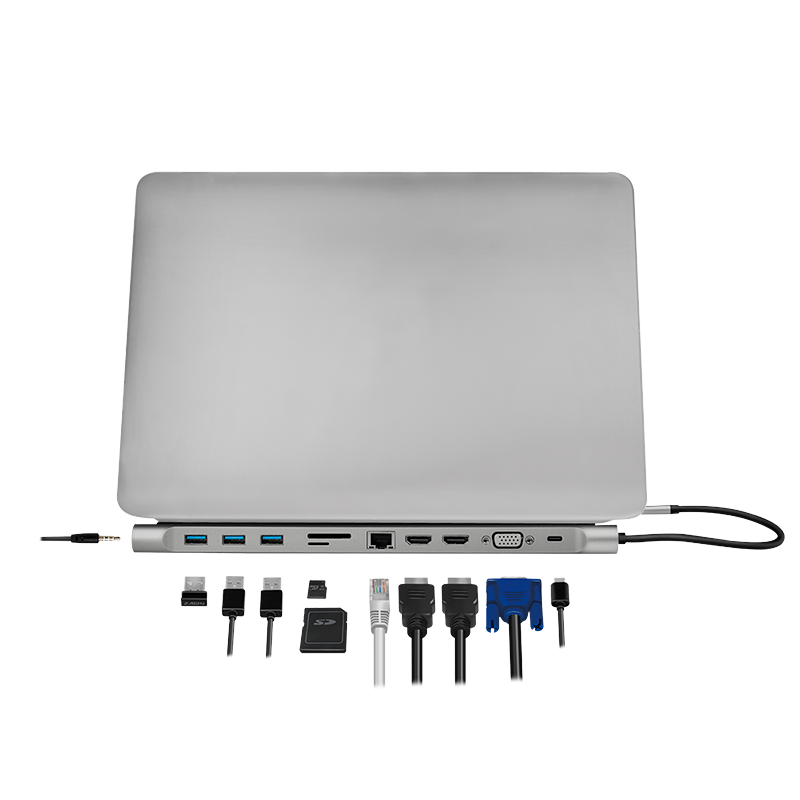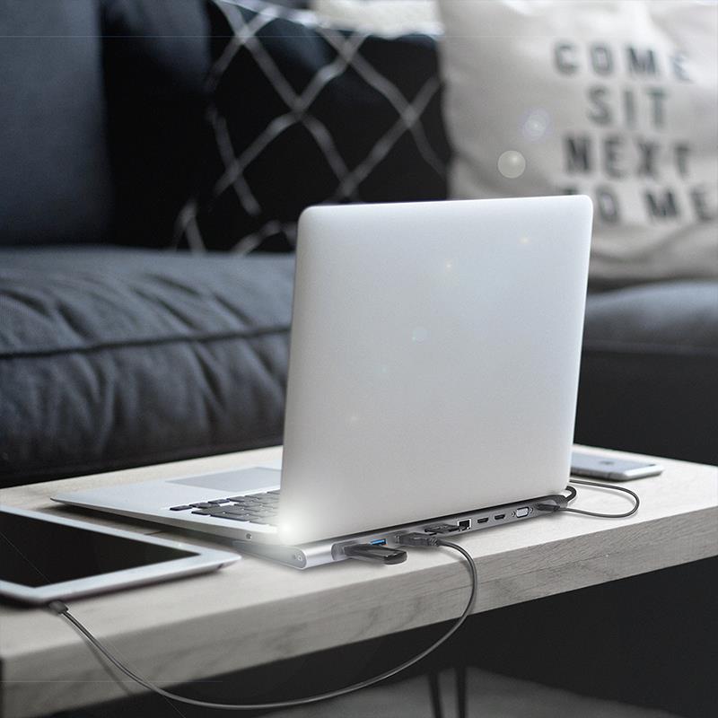 Die ultimative USB 3.2 Docking Station mit All-in-One-Lösung zum Anschluss Ihres USB-C-Laptops an mehrere Geräte bei gleichzeitiger Kühlung des Laptops aufgrund der ergonomischen Winkelstellung. Sie können UHD-4K-Projektoren- und Monitore, SD-Karten, Lautsprecher, Headsets und USB-Flash-Laufwerke an Ihren Laptop anschließen. Unterstützt wird auch USB-PD mit 100-W-Durchgangsladung und ein Gigabit-Ethernet-Anschluss, so dass Sie immer über eine sichere Internetverbindung verfügen.