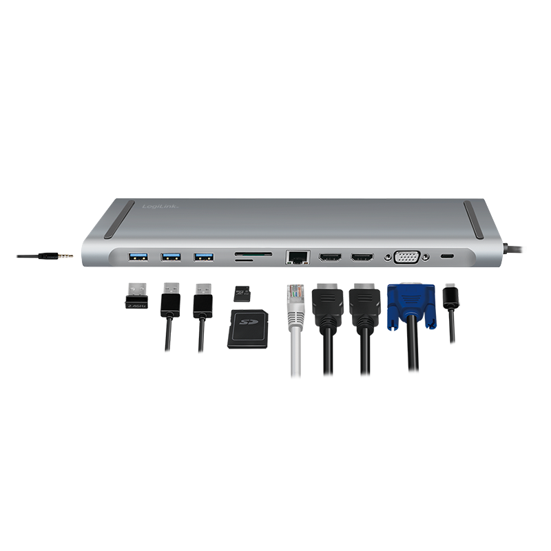 | Produktbeschreibung | LogiLink - Dockingstation - USB-C 3.2 Gen 1 - 2 x HDMI, VGA - 1GbE |