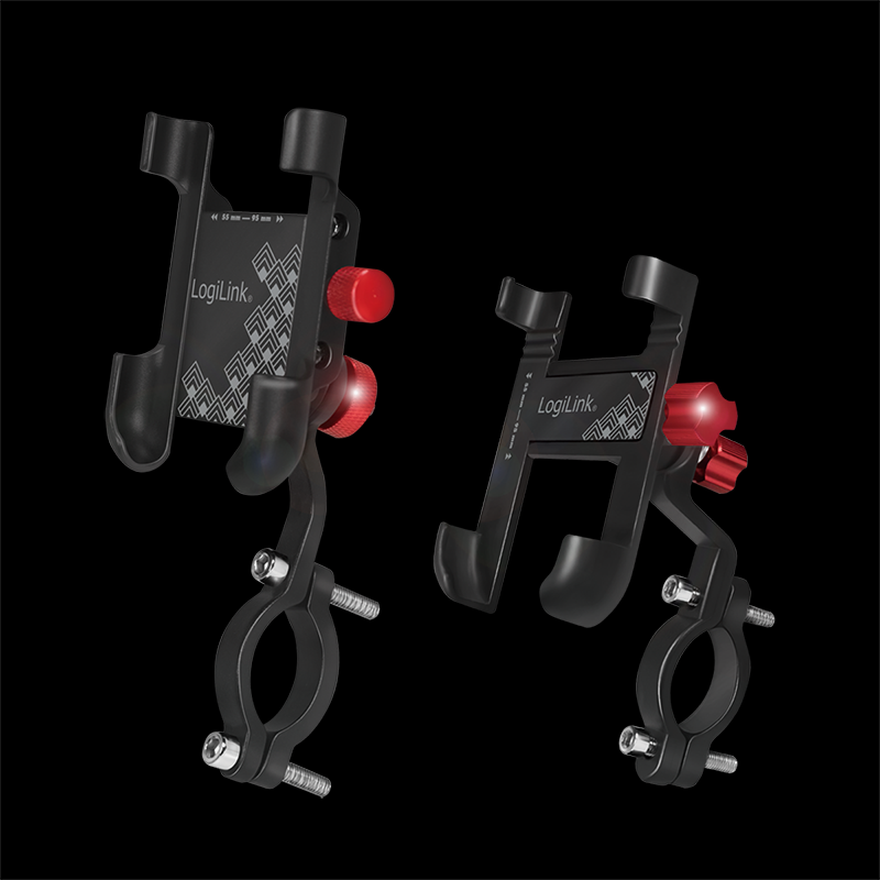 LogiLink Fahrrad-Smartphonehalterung, gerade, schwarz/rot hochwertige Aluminiumlegierung, geeignet für Mobilgeräte - 1 Stück (AA0148)