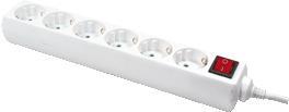 Steckdosenleiste mit 6 Schuko Buchsen von LogiLink. Beleuchteter Ein- und Ausschalter. Buchsen mit Berührungsschutz. Kabellänge 1.5 Meter, TÜV-und GS-geprüft.
