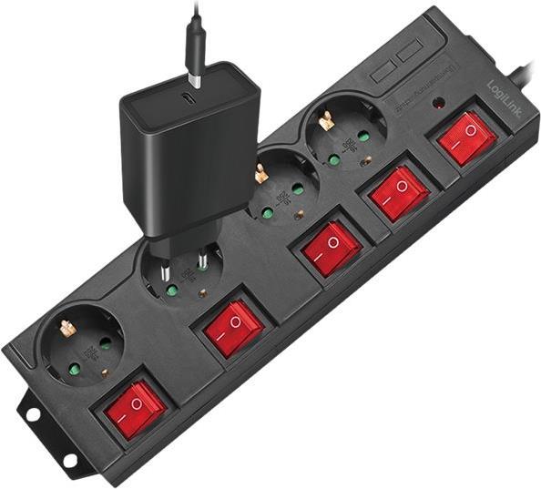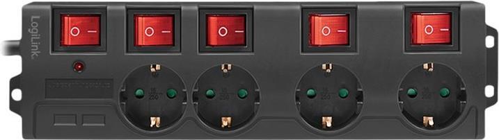 LogiLink - Verlängerungsschnur - Wechselstrom 250 V - 3680 Watt - Ausgangsanschlüsse: 4 (4 x CEE 7/3) - 1.5 m - Deutschland - Schwarz