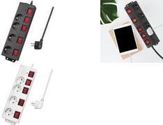 Für Einsatz im Innenbereich, beleuchteter Ein-/Aus-Schalter, Berührungsschutz, Überspannungsschutz, individuell schaltbare Sockets, Winkelstecker, 90° Grad abgewinkelter Ausgang