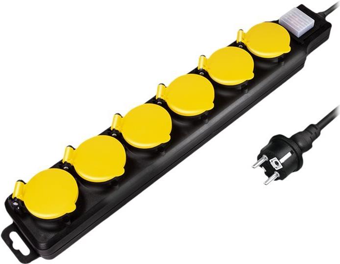 LogiLink - Verlängerungsschnur - Wechselstrom 250 V - 3680 Watt - Ausgangsanschlüsse: 6 (6 x Leistungs-CEE 7/3) - 1.5 m - Deutschland - Schwarz