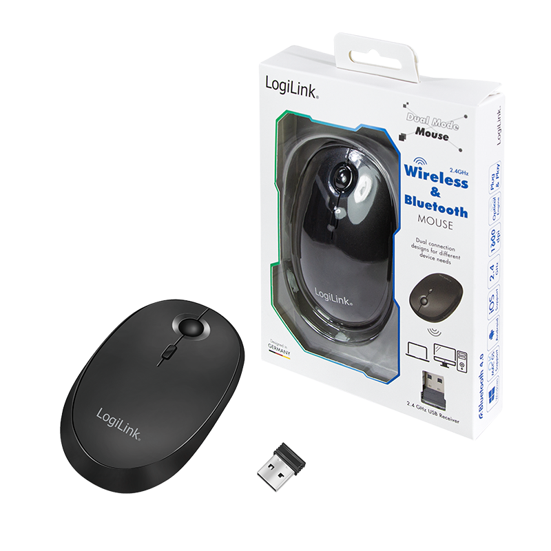 LogiLink - Maus - 2.4 GHz, Bluetooth 4.0 - Schwarz |