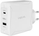 LogiLink PA0281 USB Wall Charger, 2port, USB-AF & USB-CF, 10 0 W, w/PD, white (PA0281)